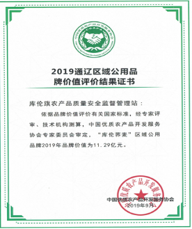A certificate indicating the result of Hure's regional buckwheat brand value evaluation that was conducted in 2019