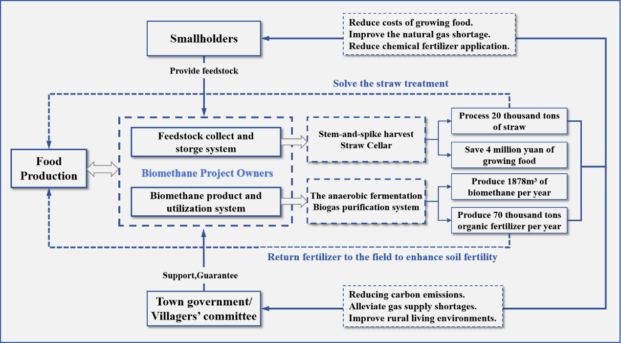 Premièrement, comment structurer un mode organisationnel efficace pour collecter la paille des petits exploitants afin d’assurer l’approvisionnement stable et continu en matières premières productrices de gaz, est le défi potentiel qui peut survenir pendant le mode « cycle alimentation-gaz ». Dans le processus de collecte de paille, les petits exploitants peuvent ne pas coopérer et même augmenter le prix de collecte de la paille, conduisant à des coûts élevés des matières premières et au risque d’interruption de l’approvisionnement en matières premières.