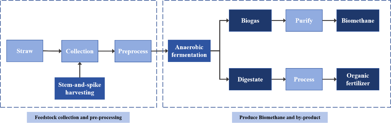 Les technologies clés incluent la technologie avancée de récolte tige-épi et la technologie de fermentation anaérobie.