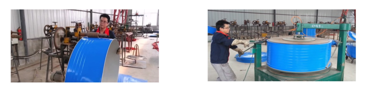 После обрезки цветного стального листа до ширины 0,5 м его можно свернуть в цилиндрическую форму. Затем края завальцовываются, а с внутренней стороны укладывается железная проволока. Специализированное оборудование используется для выштамповки выступающих и вогнутых основных ребер на верхнем, среднем и нижнем слоях колец силоса для обеспечения точного позиционирования при монтаже. Кроме того, на кольца силоса выштамповываются более мелкие ребра для повышения прочности. Основание силоса необходимо соединить с боковыми стенками нижнего кольца.